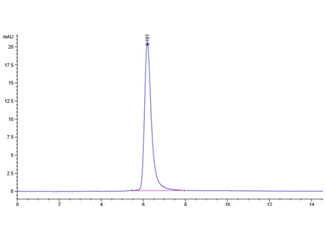 | Molecular Mass : | The protein has a predicted MW of 44. 9 kDa. Due to glycosylation, the protein migrates to 55- 70KDa based on Bis-Tris PAGE result. |