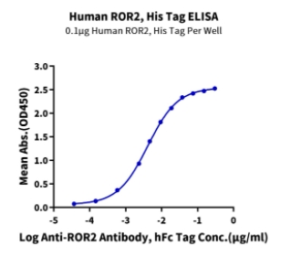| Bio-activity : | Immobilized Human ROR2, His Tag at 1μg/ml (100μl/well) on the plate. Dose response curve for Anti-ROR2 Antibody, hFc Tag with the EC50 of 4.1ng/ml determined by ELISA. |