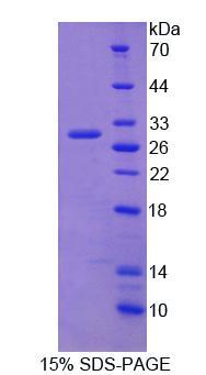 30kDa as determined by SDS-PAGE reducing conditions. |