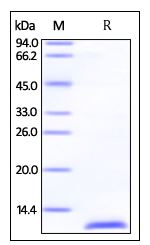 | Molecular Mass : | The protein has a calculated MW of 11.4 kDa. The protein migrates as 11 kDa under reducing (R) condition (SDS-PAGE). |