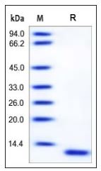 | Molecular Mass : | The protein has a calculated MW of 10.2 kDa. The protein migrates as 10.2 kDa under reducing (R) condition (SDS-PAGE). |