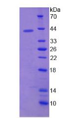 42kDa as determined by SDS-PAGE reducing conditions. |