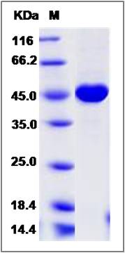 | Molecular Mass : | The secreted recombinant human SCLY consists of 455 amino acids and predicts a molecular mass of 49.5 KDa. The apparent molecular mass of the protein is approximately 46 KDa in SDS-PAGE under reducing conditions due to glycosylation. |