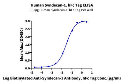 | Bio-activity : | Immobilized Human Syndecan-1, hFc Tag at 1μg/ml (100μl/Well) on the plate. Dose response curve for Biotinylated Anti-Syndecan-1 Antibody, hFc Tag with the EC50 of 28.8ng/ml determined by ELISA. |