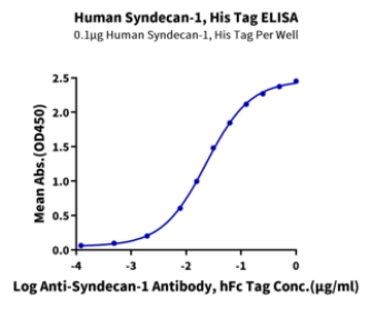| Bio-activity : | Immobilized Human Syndecan-1, His Tag at 1ug/ml (100ul/Well) on the plate. Dose response curve for Anti-Syndecan-1 Antibody, hFc Tag with the EC50 of 23.2ng/ml determined by ELISA. |