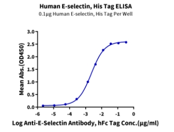 | Bio-activity : | Immobilized Human E-Selectin, His Tag at 1μg/ml (100μl/Well) on the plate. Dose response curve for Anti-E-Selectin Antibody, hFc Tag with the EC50 of 2.3ng/ml determined by ELISA. |