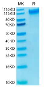 Molecular Mass : | The protein has a predicted MW of 82.9 kDa. Due to glycosylation, the protein migrates to 115-140 kDa based on Tris-Bis PAGE result. |