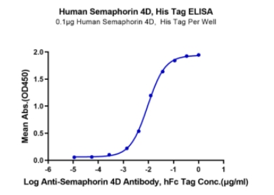 | Bio-activity : | Immobilized Human Semaphorin 4D, His Tag at 1ug/ml (100ul/well) on the plate. Dose response curve for Anti-Semaphorin 4D Antibody , hFc Tag with the EC50 of 9.3ng/ml determined by ELISA. |