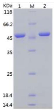 | Molecular Mass : | Predicted Molecular Weight: 48.1kDa Apparent Molecular Weight: SCCA-1 protein appeared at 47kDa in a reducing SDS-PAGE gel. |