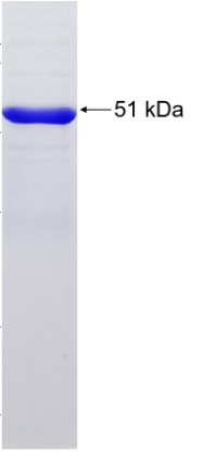 | Form : | The purified protein was lyophilized from sterile phosphate-buffered saline (PBS: 58 mM Na₂HPO₄, 17 mM NaH₂PO₄, 68 mM NaCl, pH 8.0). Prior to lyophilization, 5% (w/v) trehalose and 5% (w/v) mannitol were incorporated as cryoprotective excipients. The protein was eluted with a buffer containing 100 mM reduced glutathione (GSH). |