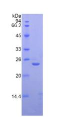 24kDa as determined by SDS-PAGE reducing conditions. |