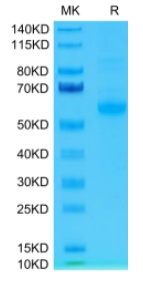 | Molecular Mass : | The protein has a predicted MW of 52.6 kDa. Due to glycosylation, the protein migrates to 53-60 kDa based on Tris-Bis PAGE result. |