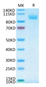 | Molecular Mass : | The protein has a predicted MW of 73.1 kDa. Due to glycosylation, the protein migrates to 90-115 kDa based on Tris-Bis PAGE result. |