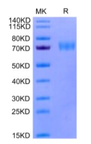 | Molecular Mass : | The protein has a predicted MW of 49.3 kDa. Due to glycosylation, the protein migrates to 68-78 kDa based on Tris-Bis PAGE result. |