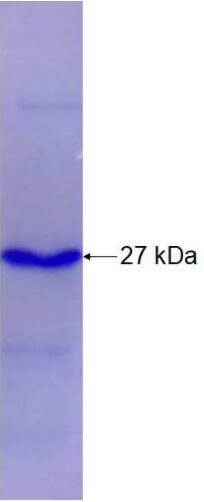 Form : | The purified protein was Lyophilized from sterile PBS (58mM Na2HPO4,17mM NaH2PO4, 68mM NaCl, pH7.). 5 % trehalose and 5 % mannitol are added as protectants before lyophilization. |