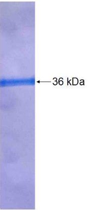 | Form : | The purified protein was lyophilized from sterile phosphate-buffered saline (PBS: 58 mM Na₂HPO₄, 17 mM NaH₂PO₄, 68 mM NaCl, pH 8.0). Prior to lyophilization, 5% (w/v) trehalose and 5% (w/v) mannitol were incorporated as cryoprotective excipients. The protein was eluted with a buffer containing 100 mM reduced glutathione (GSH). |