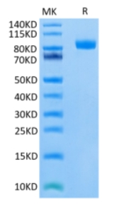 | Molecular Mass : | The protein has a predicted MW of 66.1 kDa. Due to glycosylation, the protein migrates to 78-90 kDa based on Tris-Bis PAGE result. |