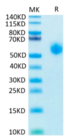 | Molecular Mass : | The protein has a predicted MW of 40.1 kDa. Due to glycosylation, the protein migrates to 52-68 kDa based on Tris-Bis PAGE result. |