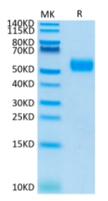 | Molecular Mass : | The protein has a predicted MW of 39.8 kDa. Due to glycosylation, the protein migrates to 50-70 kDa based on Tris-Bis PAGE result. |