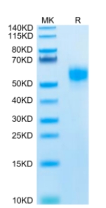 | Molecular Mass : | The protein has a predicted MW of 40 kDa. Due to glycosylation, the protein migrates to 50-70 kDa based on Tris-Bis PAGE result. |