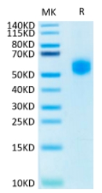 | Molecular Mass : | The protein has a predicted MW of 38 kDa. Due to glycosylation, the protein migrates to 55-65 kDa based on Tris-Bis PAGE result. |