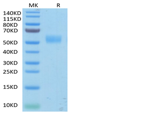 | Molecular Mass : | The protein has a predicted MW of 40 KDa. Due to glycosylation, the protein migrates to 52- 60KDa based on Bis-Tris PAGE result. |