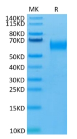| Molecular Mass : | The protein has a predicted MW of 39.9 kDa. Due to glycosylation, the protein migrates to 60-70 kDa based on Tris-Bis PAGE result. |