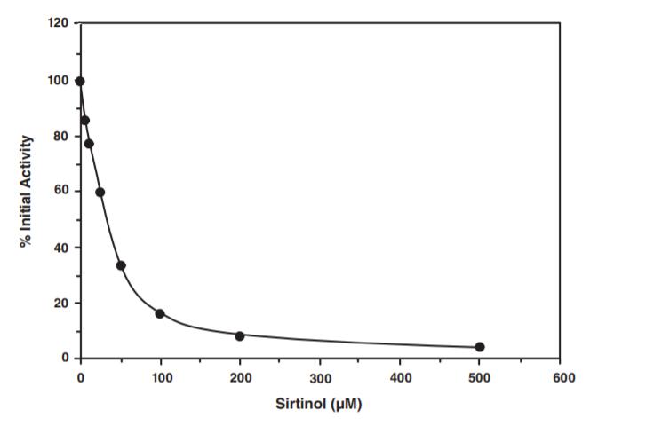One unit is defined as the amount of enzyme required to produce 1 pmole of 7-amino-4-methylcoumarin per minute at 25 centigrade in 50 mM Tris-HCl, pH 8.0, 137 mM NaCl, 2.7 mM KCl, 1 mM MgCl2, containing 125 μM p53 peptide amino acids 379-382 (Arg-His-Lys-Lys (e-acetyl)-AMC), and 3 mM NAD+. |