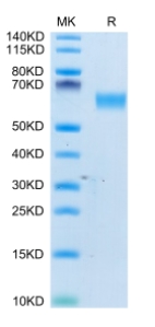 Molecular Mass : | The protein has a predicted MW of 47.9 kDa. Due to glycosylation, the protein migrates to 60-70 kDa based on Tris-Bis PAGE result. |