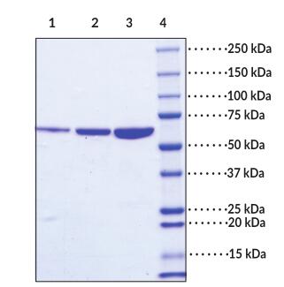 | Product Overview : | Recombinant full length human STIP1 protein (2-543) with a N-terminally Histidine tag was expressed in E. coli. |