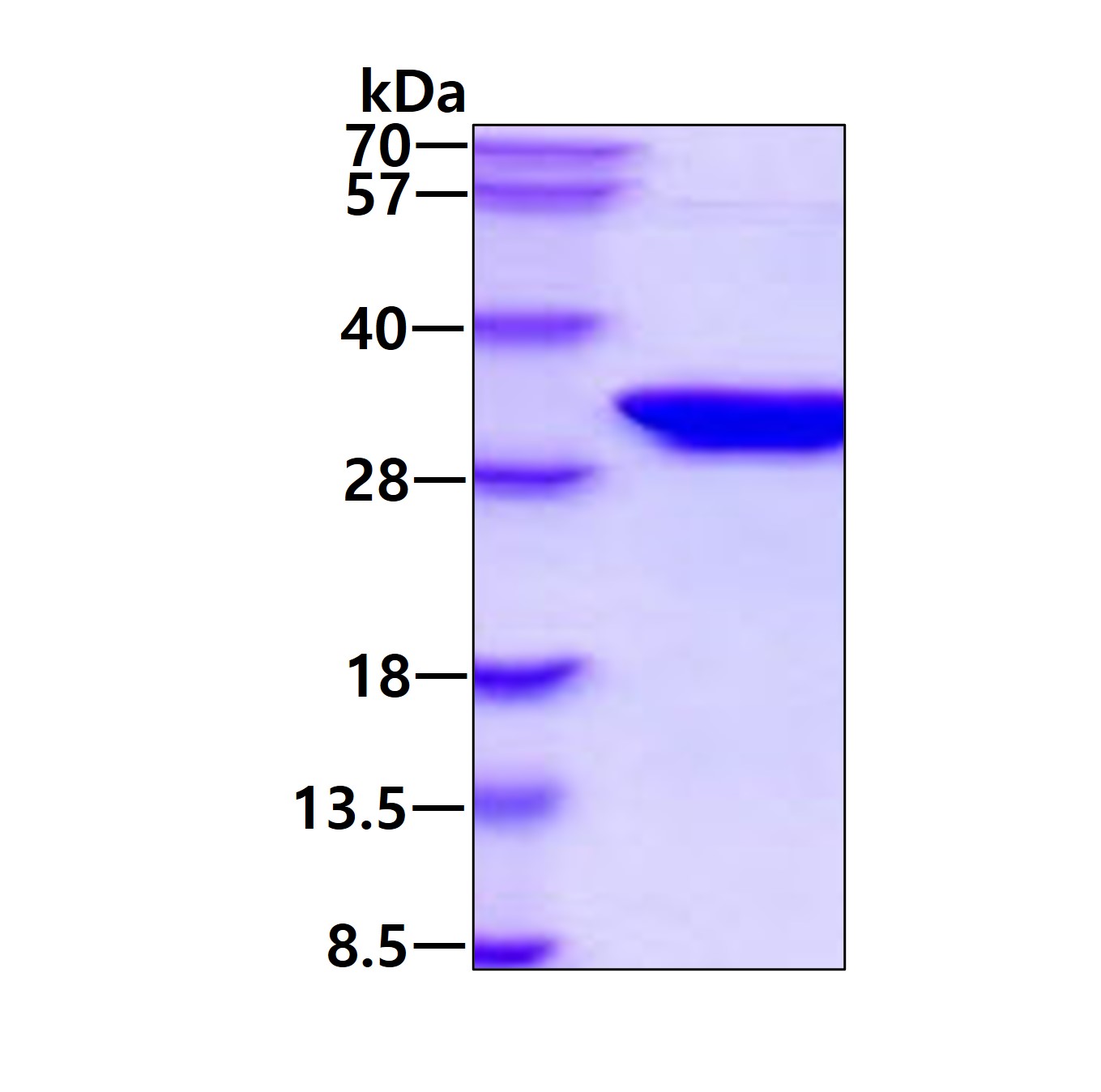 30.7 kDa (265aa) confirmed by MALDI-TOF |