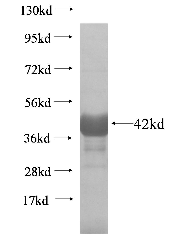 Product Overview : | The protein was expressed as 6*his-tagged fusion protein by E.Coli and puri?ed by Ni-sepharose. |