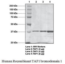 | Product Overview : | Recombinant Human TAF1 bromodomain 1 (1371-1496 aa) fused to a GST tag at the N-terminus |