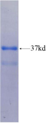 | Form : | The purified protein was Lyophilized from sterile PBS (58mM Na2HPO4,17mM NaH2PO4, 68mM NaCl, pH8.). 5 % trehalose and 5 % mannitol are added as protectant before lyophilization. The elution buffer contain 100mM GSH. |