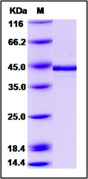 | Molecular Mass : | The secreted recombinant human TCN2 comprises 418 amino acids with a predicted molecular mass of 46.7 kDa. It migrates with the molecular weight of approximately 44 kDa in SDS-PAGE under reducing conditions. |