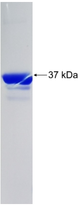 Form : | The purified protein was lyophilized from sterile phosphate-buffered saline (PBS: 58 mM Na₂HPO₄, 17 mM NaH₂PO₄, 68 mM NaCl, pH 8.0). Prior to lyophilization, 5% (w/v) trehalose and 5% (w/v) mannitol were incorporated as cryoprotective excipients. The protein was eluted with a buffer containing 100 mM reduced glutathione (GSH). |
