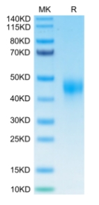 Molecular Mass : | The protein has a predicted MW of 32.1 kDa. Due to glycosylation, the protein migrates to 40-50 kDa based on Tris-Bis PAGE result. |