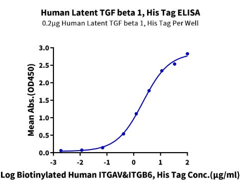 | Bio-activity : | Immobilized Human Latent TGF beta 1, His Tag at 2μg/ml (100μl/well) on the plate. Dose response curve for Biotinylated Human ITGAV&ITGB6, His Tag with the EC50 of 2.2μg/ml determined by ELISA. |