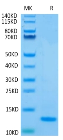 Molecular Mass : | The protein has a predicted MW of 12.7 kDa. Due to glycosylation, the protein migrates to 13-15 kDa based on Tris-Bis PAGE result. |