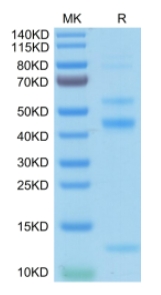Molecular Mass : | The protein has a predicted MW of 46.6 kDa. Due to glycosylation, the protein migrates to 40-60 kDa&12-13 kDa based on Tris-Bis PAGE result. |