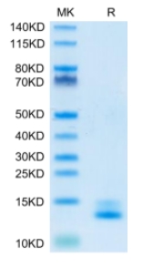 | Molecular Mass : | The protein has a predicted MW of 12.7 kDa. Due to glycosylation, the protein migrates to 13-15 kDa based on Tris-Bis PAGE result. |