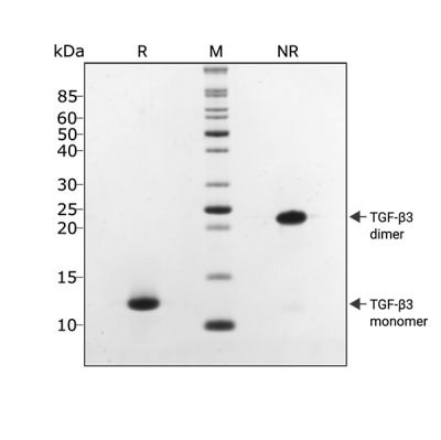 | Product Overview : | Recombinant human TGF-β3 protein without tag was expressed in E. coli. Animal-free (AOF) and carrier protein-free. Mass spectrometry: single species with expected mass. Recovery from stock vial: >95% |