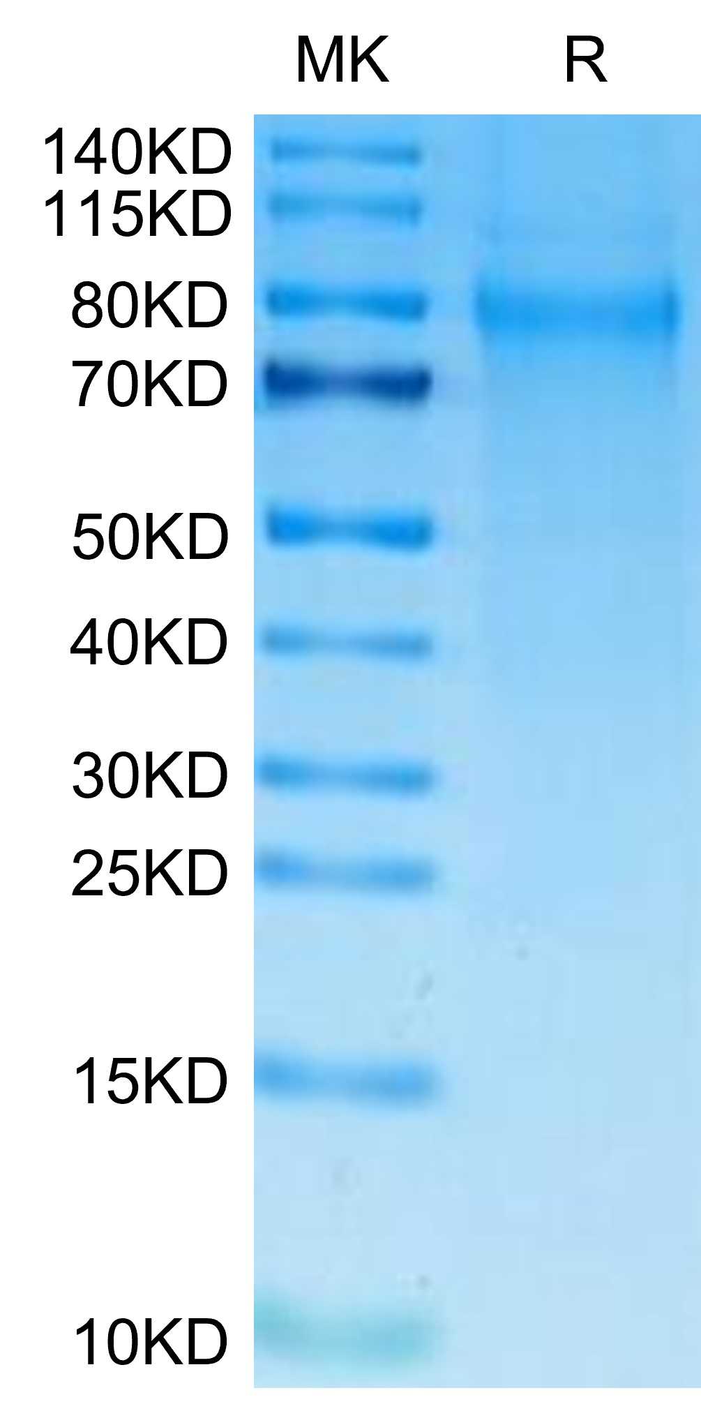 | Molecular Mass : | The protein has a predicted MW of 32.43 kDa. Due to glycosylation, the protein migrates to 78-98 kDa based on Tris-Bis PAGE result. |
