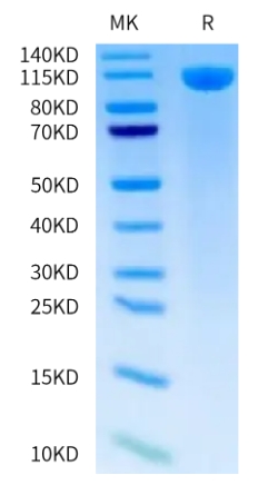 | Molecular Mass : | It has a predicted MW of 80.25 kDa. Due to glycosylation, the protein migrates to 100-120 kDa based on Bis-Tris PAGE result. |