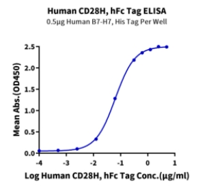 | Bio-activity : | Immobilized Human B7-H7, His Tag at 5μg/ml (100μl/well) on the plate. Dose response curve for Human CD28H, hFc Tag with the EC50 of 63.4ng/ml determined by ELISA. |