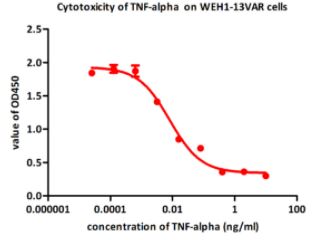 | Product Overview : | Recombinant Human TNF protein (Val77-Leu233)(low endotoxin, HPLC-verified) carries no tag and was expressed in human 293 cells (HEK293). |