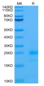 Molecular Mass : | The protein has a predicted MW of 24.7 kDa. Due to glycosylation, the protein migrates to 25-30 kDa based on Tris-Bis PAGE result. |