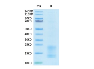 | Molecular Mass : | The protein has a predicted MW of 9.5 kDa.Due to glycosylation, the protein migrates to 13-25KDa based on Bis-Tris PAGE result. |