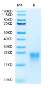 | Molecular Mass : | The protein has a predicted MW of 7.6 kDa. Due to glycosylation, the protein migrates to 13-25 kDa based on Tris-Bis PAGE result. |