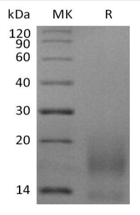Molecular Mass : | The recombinant Human TNFRSF17 Protein has a predicted molecular mass of 7.7kDa, it migrates with an apparent molecular mass of 12&15-17kDa under reducing conditions |